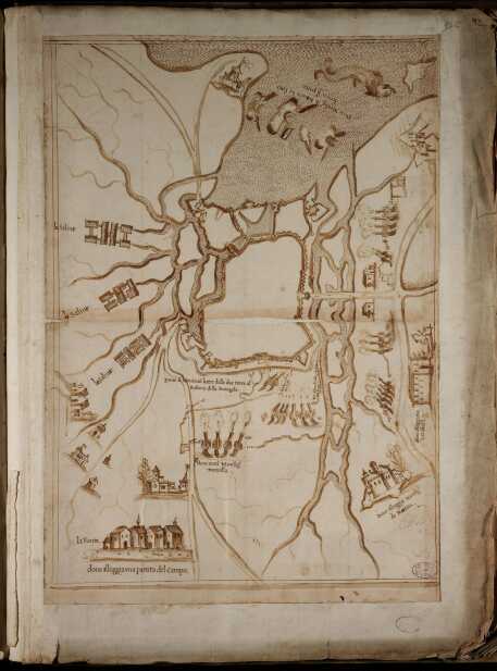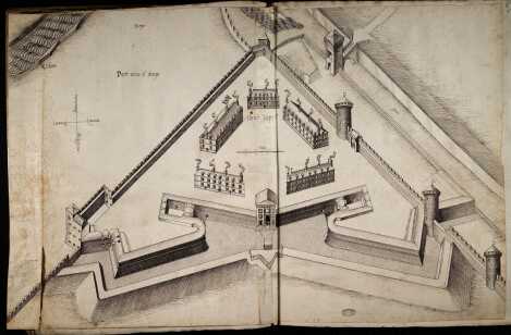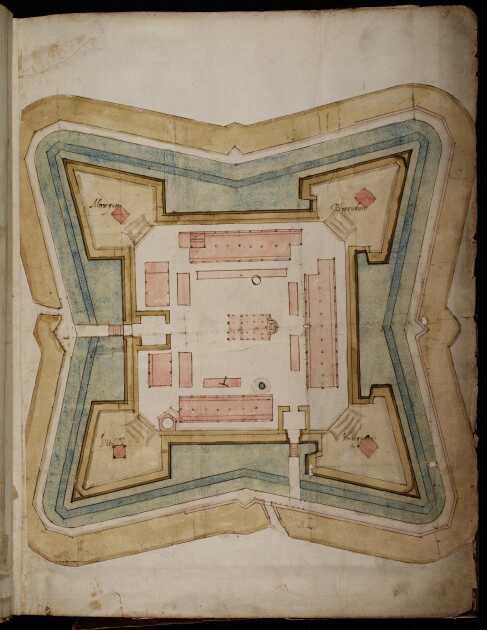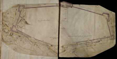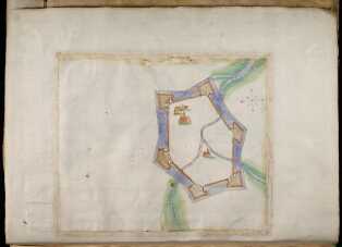 Biblioteca antica, Architettura militare, disegni di piazze e fortificazioni, parte su pergamena