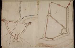 Luogo non identificato. Planimetria generale e pianta della cittadella