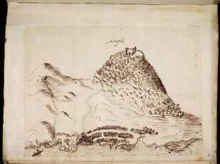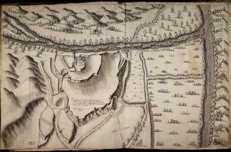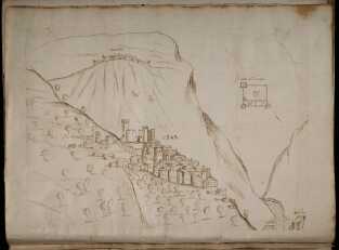 La Mure. Pianta con dettagli in prospettiva delle mura fortificate durante l'assedio del 1580