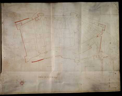 Luogo non identificato. Pianta delle mura e fortificazioni col porto