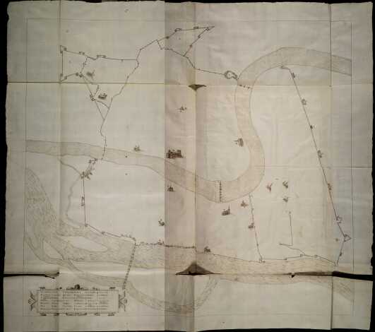 Luogo non identificato. Pianta con dettagli in prospettiva di fortificazione lungo il Rodano