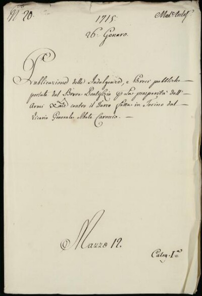 Sei in Strumenti di ricerca: Sezione Corte | Materie ecclesiastiche per categorie [Inventario n. 79.1] | Categoria 1. Negoziazione colla Corte di Roma | Mazzo 12 | Fascicolo 20