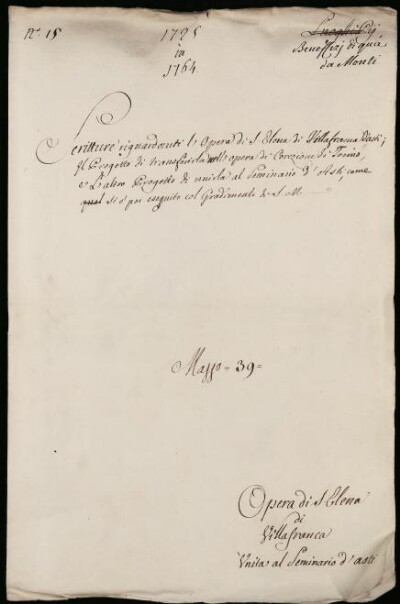 Sei in Strumenti di ricerca: Sezione Corte | Benefizi di qua dai monti in Materie ecclesiastiche [Inventario n. 81.2] | Benefizi di qua dai Monti | Mazzo 39 | Fascicolo 15. Villafranca d'Asti. Collegiata di S.ta Elena
