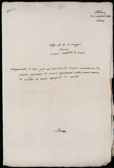 Consegnamento di beni posti nel territorio di Vinovo riconosciuti da Giacomo Pautacio di Vinovo dipendenti fatto annuo canone da Ribaldo da Kuore consignore di Vinovo. 1469, ind. II, mag. 12 - notaio Valfredo di Vinovo.