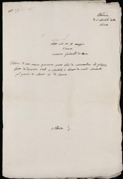 Vendita di una mezza giornata prato fini di Moncalieri ad Giszam atta da Domenico Viale a Michele, e Lazzaro de Vialis fratelli pel prezzo di fiorini 17 di Savoia. 1470, ind. III, mag. 10 -notaio Gandolfo de Kuore