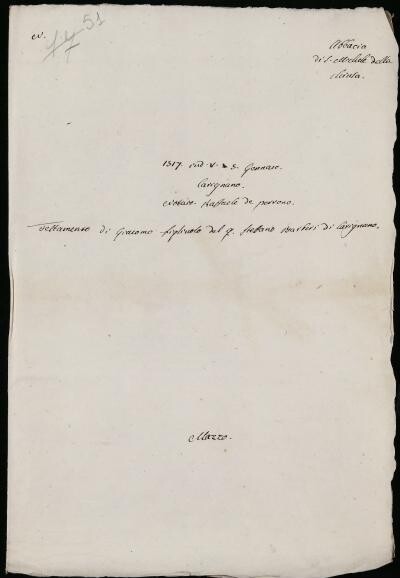 Testamento di Giacomo fligliuolo del quondam Steffano Barberis di Carignano. 1517, ind. V, gen. 5 - notaio Raffaele de Perrono; già n. 17