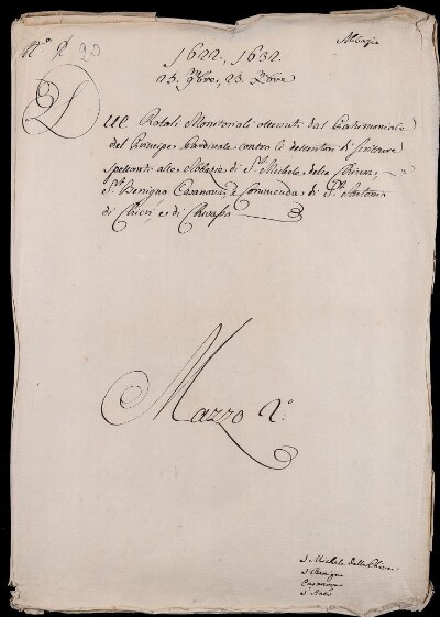Due rotoli monitoriali ottenuti dal patrimoniale del principe cardinale contro li dettentori di scritture spettanti alle abbazie di S. Michele della Chiusa, S. Benigno, Casanova e commenda di S. Antonio di Chieri e di Chivasso. 1622, nov. 25 - 1632, dic. 23
