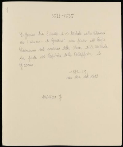 Differenze tra l'abate di S. Michele della Chiusa ed i canonici di Giaveno, con parere del Regio Economo sul servizio della Chiesa di S. Michele da parte del Capitolo della Collegiata di Giaveno. 1822 - 1825