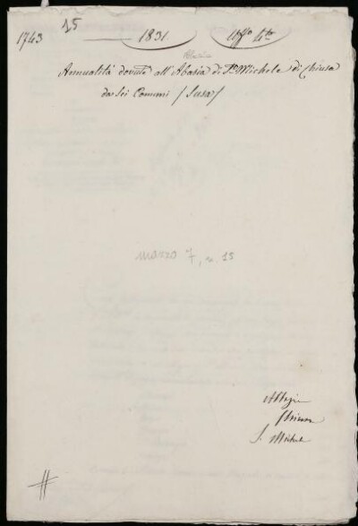 Annualità dovute all'abbazia di S. Michele di Chiusa da sei Comuni (Susa ). 1831