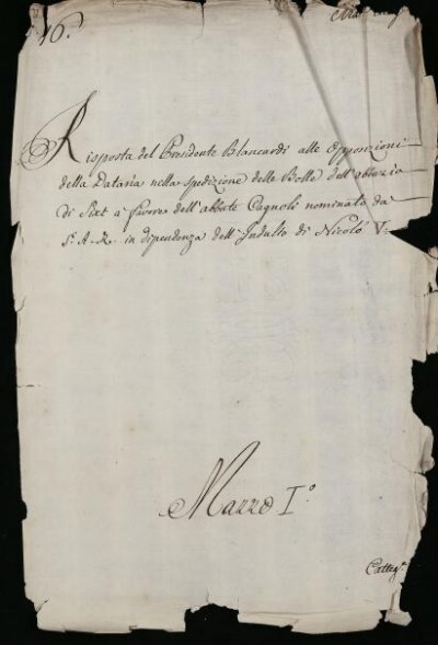 Sei in Strumenti di ricerca: Sezione Corte | Materie ecclesiastiche per categorie [Inventario n. 79.1] | Categoria 1. Negoziazione colla Corte di Roma | Mazzo 1 | Fascicolo 16