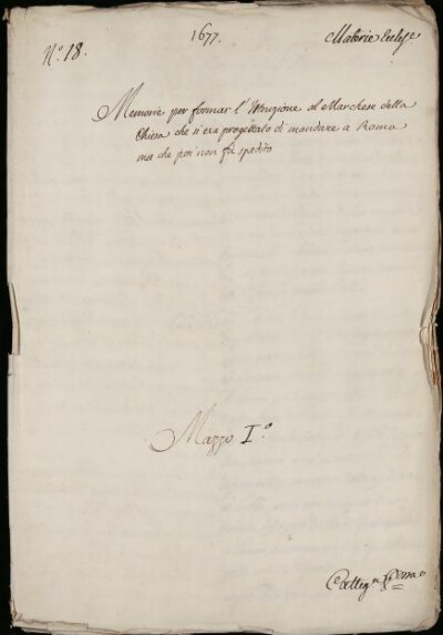 Sei in Strumenti di ricerca: Sezione Corte | Materie ecclesiastiche per categorie [Inventario n. 79.1] | Categoria 1. Negoziazione colla Corte di Roma | Mazzo 1 | Fascicolo 18