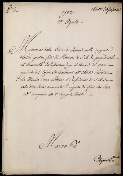 Sei in Strumenti di ricerca: Sezione Corte | Materie ecclesiastiche per categorie [Inventario n. 79.1] | Categoria 1. Negoziazione colla Corte di Roma | Mazzo 6 | Fascicolo 3