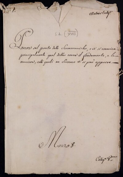 Sei in Strumenti di ricerca: Sezione Corte | Materie ecclesiastiche per categorie [Inventario n. 79.1] | Categoria 1. Negoziazione colla Corte di Roma | Mazzo 8 | Fascicolo 1