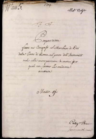 Sei in Strumenti di ricerca: Sezione Corte | Materie ecclesiastiche per categorie [Inventario n. 79.1] | Categoria 1. Negoziazione colla Corte di Roma | Mazzo 9 | Fascicolo 5