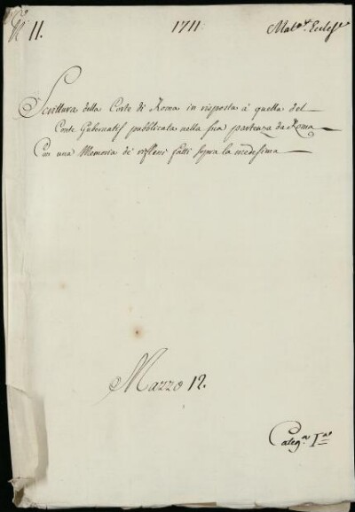 Sei in Strumenti di ricerca: Sezione Corte | Materie ecclesiastiche per categorie [Inventario n. 79.1] | Categoria 1. Negoziazione colla Corte di Roma | Mazzo 12 | Fascicolo 11