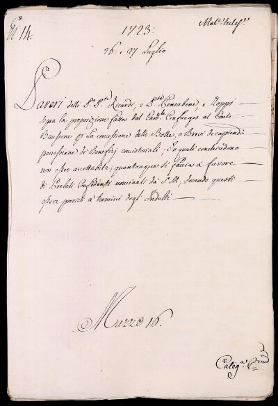Sei in Strumenti di ricerca: Sezione Corte | Materie ecclesiastiche per categorie [Inventario n. 79.1] | Categoria 1. Negoziazione colla Corte di Roma | Mazzo 16 | Fascicolo 14