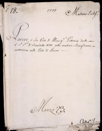 Sei in Strumenti di ricerca: Sezione Corte | Materie ecclesiastiche per categorie [Inventario n. 79.1] | Categoria 1. Negoziazione colla Corte di Roma | Mazzo 23 | Fascicolo 18