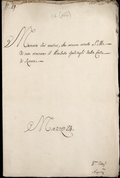 Sei in Strumenti di ricerca: Sezione Corte | Materie ecclesiastiche per categorie [Inventario n. 79.1] | Categoria 1. Negoziazione colla Corte di Roma | Mazzo 24 | Fascicolo 19