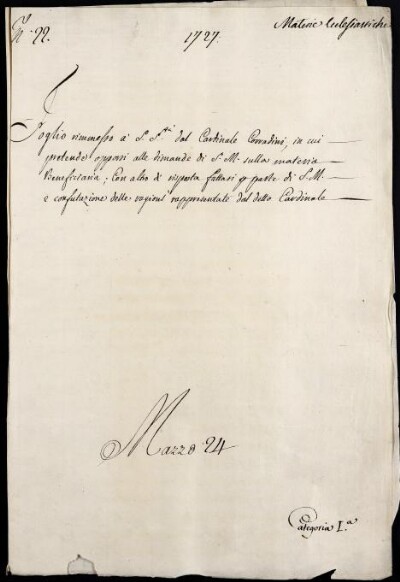 Sei in Strumenti di ricerca: Sezione Corte | Materie ecclesiastiche per categorie [Inventario n. 79.1] | Categoria 1. Negoziazione colla Corte di Roma | Mazzo 24 | Fascicolo 22