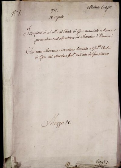 Sei in Strumenti di ricerca: Sezione Corte | Materie ecclesiastiche per categorie [Inventario n. 79.1] | Categoria 1. Negoziazione colla Corte di Roma | Mazzo 25 | Fascicolo 1