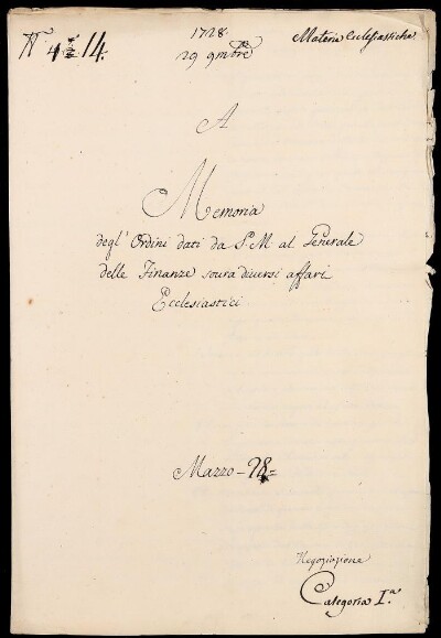 Sei in Strumenti di ricerca: Sezione Corte | Materie ecclesiastiche per categorie [Inventario n. 79.1] | Categoria 1. Negoziazione colla Corte di Roma | Mazzo 28 | Fascicolo 14
