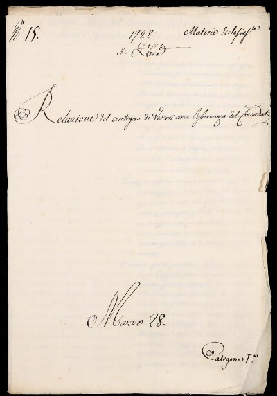 Sei in Strumenti di ricerca: Sezione Corte | Materie ecclesiastiche per categorie [Inventario n. 79.1] | Categoria 1. Negoziazione colla Corte di Roma | Mazzo 28 | Fascicolo 15