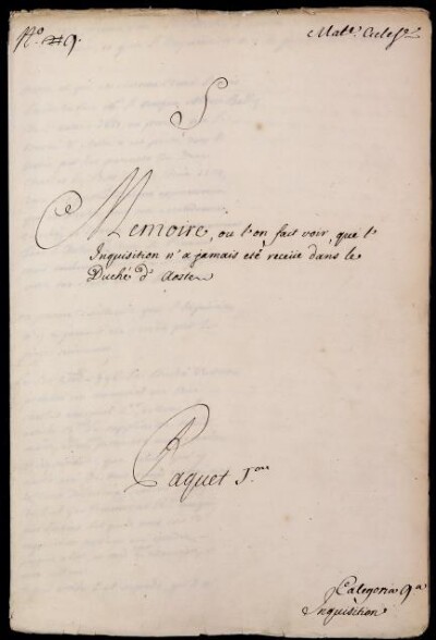 Sei in Strumenti di ricerca: Sezione Corte | Materie ecclesiastiche per categorie [Inventario n. 79.1] | Categoria 9. Inquisizione | Mazzo 1 | Fascicolo 9