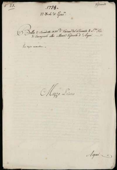 Sei in Strumenti di ricerca: Sezione Corte | Arcivescovadi e vescovadi in Materie ecclesiastiche [Inventario n. 80] | Vescovado di Acqui | Mazzo 1 | Fascicolo 23
