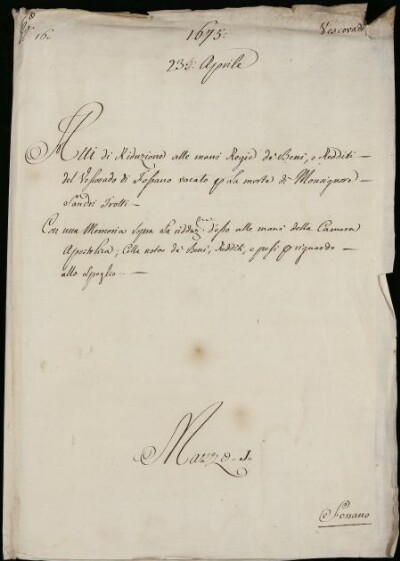 Sei in Strumenti di ricerca: Sezione Corte | Arcivescovadi e vescovadi in Materie ecclesiastiche [Inventario n. 80] | Vescovado di Fossano | Mazzo 1 | Fascicolo 16