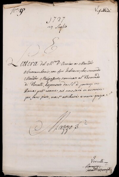 Sei in Strumenti di ricerca: Sezione Corte | Arcivescovadi e vescovadi in Materie ecclesiastiche [Inventario n. 80] | Vescovado di Vercelli | Mazzo 2 | Fascicolo 9