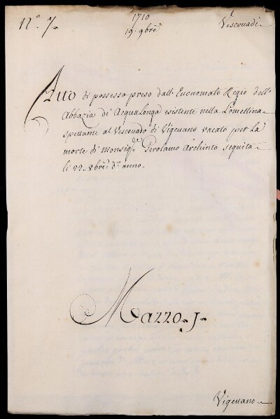 Sei in Strumenti di ricerca: Sezione Corte | Arcivescovadi e vescovadi in Materie ecclesiastiche [Inventario n. 80] | Vescovado di Vigevano | Mazzo 1 | Fascicolo 7
