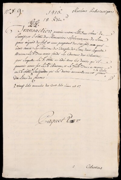 Sei in Strumenti di ricerca: Sezione Corte | Scritture riguardanti li regolari tanto di qua che di là da' monti in Materie ecclesiastiche [Inventario n. 87] | Regolari di là dai monti | Mazzo 2. Celestins de Lyon | Fascicolo 9