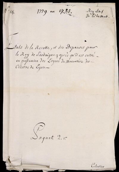 Sei in Strumenti di ricerca: Sezione Corte | Scritture riguardanti li regolari tanto di qua che di là da' monti in Materie ecclesiastiche [Inventario n. 87] | Regolari di là dai monti | Mazzo 2. Celestins de Lyon | Fascicolo 14