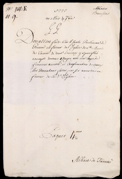 Sei in Strumenti di ricerca: Sezione Corte | Scritture riguardanti li regolari tanto di qua che di là da' monti in Materie ecclesiastiche [Inventario n. 87] | Regolari di là dai monti | Mazzo 4 | Fascicolo 9. Citeaux de Tamié. Abbaie de Notre Dame