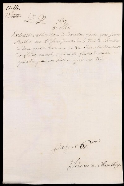 Sei in Strumenti di ricerca: Sezione Corte | Scritture riguardanti li regolari tanto di qua che di là da' monti in Materie ecclesiastiche [Inventario n. 87] | Regolari di là dai monti | Mazzo 6 | Fascicolo 14. Jesuites de Chambery