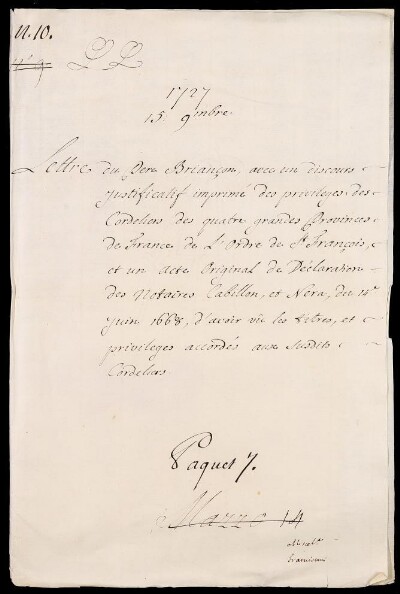 Sei in Strumenti di ricerca: Sezione Corte | Scritture riguardanti li regolari tanto di qua che di là da' monti in Materie ecclesiastiche [Inventario n. 87] | Regolari di là dai monti | Mazzo 7 | Fascicolo 10. Mineurs Observantins de S. François de Savoie en General