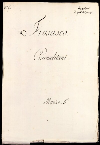 Sei in Strumenti di ricerca: Sezione Corte | Scritture riguardanti li regolari tanto di qua che di là da' monti in Materie ecclesiastiche [Inventario n. 87] | Regolari di quà dei monti | Mazzo 6 | Fascicolo 1. Carmelitani di Frosasco