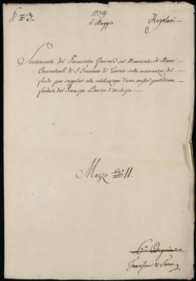 Sei in Strumenti di ricerca: Sezione Corte | Scritture riguardanti li regolari tanto di qua che di là da' monti in Materie ecclesiastiche [Inventario n. 87] | Regolari di quà dei monti | Mazzo 11 | Fascicolo 3. Minori Conventuali di S. Francesco di Torino