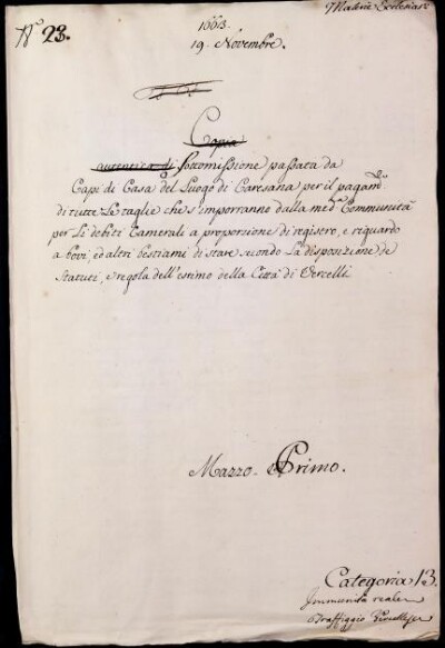 Sei in Strumenti di ricerca: Sezione Corte | Materie ecclesiastiche per categorie [Inventario n. 79.2] | Categoria 13. Trafiggio Vercellese | Mazzo 1 | Fascicolo 23