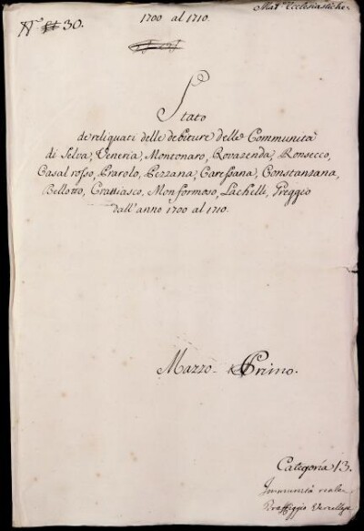 Sei in Strumenti di ricerca: Sezione Corte | Materie ecclesiastiche per categorie [Inventario n. 79.2] | Categoria 13. Trafiggio Vercellese | Mazzo 1 | Fascicolo 30