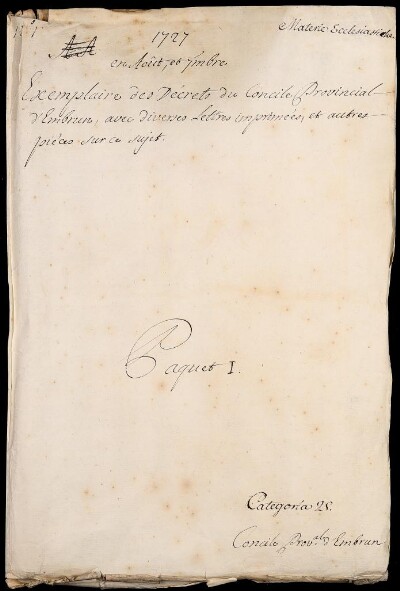 Sei in Strumenti di ricerca: Sezione Corte | Materie ecclesiastiche per categorie [Inventario n. 79.2] | Categoria 25. Concilio Provinciale d'Embrun | Mazzo 1 | Fascicolo 1