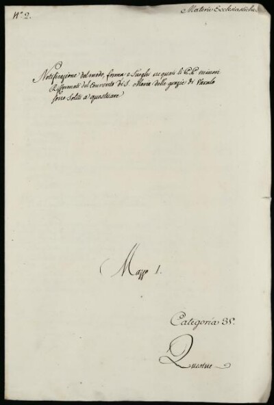 Sei in Strumenti di ricerca: Sezione Corte | Materie ecclesiastiche per categorie [Inventario n. 79.2] | Categoria 35. Questue | Mazzo 1 | Fascicolo 2