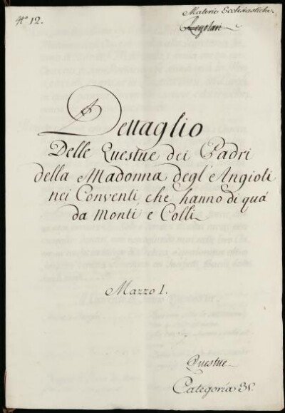 Sei in Strumenti di ricerca: Sezione Corte | Materie ecclesiastiche per categorie [Inventario n. 79.2] | Categoria 35. Questue | Mazzo 1 | Fascicolo 12