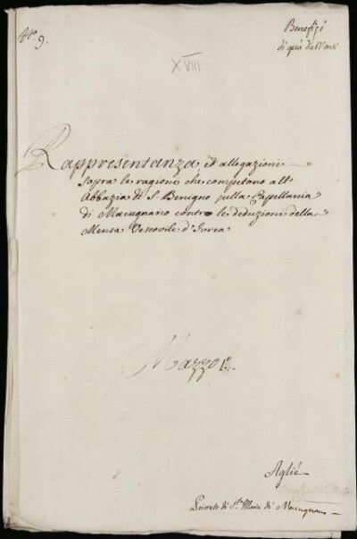 Sei in Strumenti di ricerca: Sezione Corte | Benefizi di qua dai monti in Materie ecclesiastiche [Inventario n. 81.1] | Benefizi di qua dai Monti | Mazzo 1 | Fascicolo 9. Agliè. Priorato di S. Maria di Macugnano