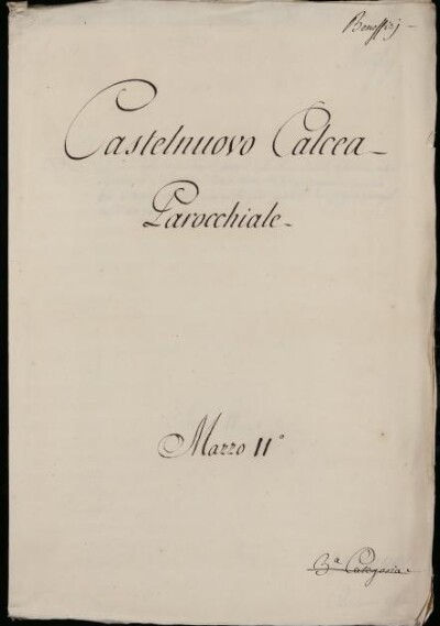 Sei in Strumenti di ricerca: Sezione Corte | Benefizi di qua dai monti in Materie ecclesiastiche [Inventario n. 81.1] | Benefizi di qua dai Monti | Mazzo 11 | Fascicolo 1. Castelnuovo Calcea. Parrochiale