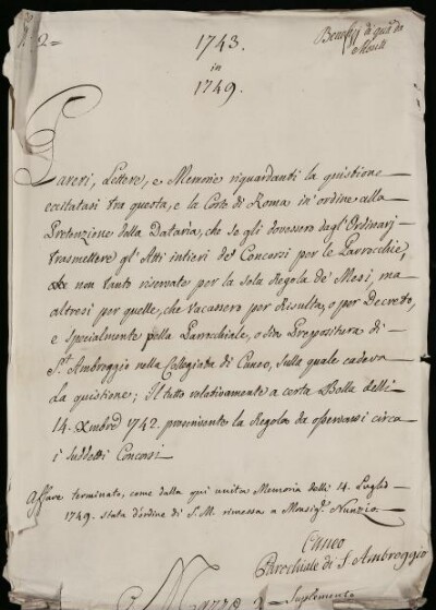 Sei in Strumenti di ricerca: Sezione Corte | Benefizi di qua dai monti in Materie ecclesiastiche [Inventario n. 81.3] | Benefizi di qua dà Monti | Mazzo 2 | Fascicolo 2. Cuneo Parrochiale di Sant'Ambrogio