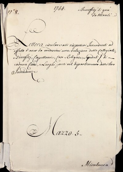 Sei in Strumenti di ricerca: Sezione Corte | Benefizi di qua dai monti in Materie ecclesiastiche [Inventario n. 81.3] | Benefizi di qua dà Monti | Mazzo 5. Miscellanea | Fascicolo 8