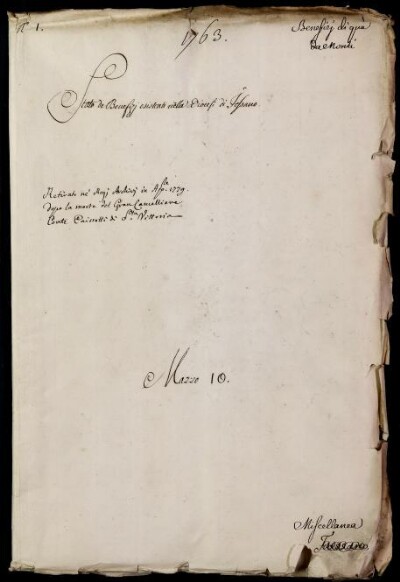 Sei in Strumenti di ricerca: Sezione Corte | Benefizi di qua dai monti in Materie ecclesiastiche [Inventario n. 81.3] | Benefizi di qua dà Monti | Mazzo 10. Miscellanea | Fascicolo 1