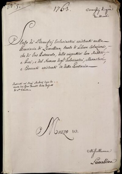 Sei in Strumenti di ricerca: Sezione Corte | Benefizi di qua dai monti in Materie ecclesiastiche [Inventario n. 81.3] | Benefizi di qua dà Monti | Mazzo 10. Miscellanea | Fascicolo 5