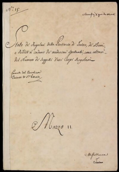 Sei in Strumenti di ricerca: Sezione Corte | Benefizi di qua dai monti in Materie ecclesiastiche [Inventario n. 81.3] | Benefizi di qua dà Monti | Mazzo 11. Miscellanea | Fascicolo 15